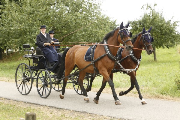 SABINE SCHWEICKERT, geb. 30.11.1966 Als Kind, ohne Vorbelastung von Eltern oder sonstigen Verwandten, schon immer von Pferden fasziniert, sparte sie sich ihr Taschengeld zusammen, um bei einem, ein paar Ortschaften entfernten, Reitverein ab und an Reitstunden zu nehmen. Das Fieber ließ sie nie los und so kam sie mit 18 Jahren zum ihrem ersten eigenen Pferd. Seit der Zeit, als engagierter Reiter im Freizeitbereich mit Augenmerk auf Dressur unterwegs, blieb sie lange Zeit der Reiterei treu. Um 1990 wechselte sie zwar schon ab und an mal die Zügel gegen die Leinen, aber nur rein für gelegentliche Ausfahrten mit Freunden. Doch irgendwie hat sie sich komplett mit dem Fahrvirus infiziert und seit Anfang 2000 ganz dem Fahrsport verschrieben. Angefangen, ohne jegliche Ambitionen für mehr, hat es mit dem kleinen Fahrabzeichen, weiter ging es dann mit den aufbauenden Fahrabzeichen, bis hin zur Trainerausbildung. Die Prüfung zu den FN Trainerscheinen / Leistungssport, absolvierte sie auf dem Christinenhof, dem Domizil unseres Vierspänner Weltmeisters Michael Freund, in Dreieich/Frankfurt a.M., unter der Leitung von Freund/Temporini.